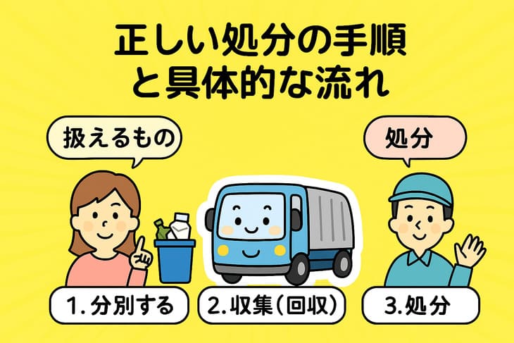 | 4. 収集・運搬 | 計画どおりの回収 | 排出時間・場所の遵守、立会い(必要時) | 収集記録、領収書の発行 |