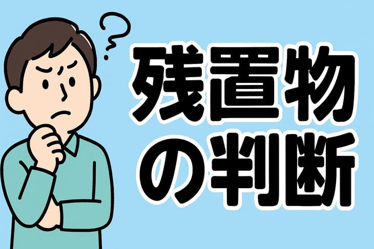 なお、残置物が発見された場合は、自治体の一般廃棄物ルールに従って速やかに排出するか、一般廃棄物収集運搬許可のある回収業者へ依頼します。無許可回収へ渡すと不法投棄につながるおそれがあるため避けてください。