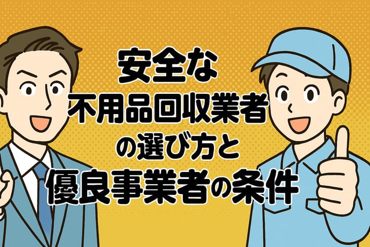 不用品回収は、正しい知識と簡単なチェックリストさえ押さえておけば、違法業者を避けて安全に利用することができます。許可証・会社情報・料金表示・勧誘方法の4つを冷静に確認し、複数社から見積もりを取る、契約内容を必ず書面で残すといった基本を徹底することで、トラブルに巻き込まれる可能性は大きく下げられます。本記事の内容を参考に、ご自身とご家族の財産を守りながら、環境にも配慮した適正な不用品処分を行っていただけましたら幸いです。